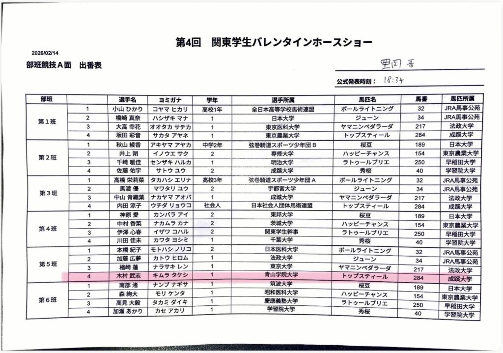 2/13(金)から2/15(日)にかけてJRA馬事公苑にて開催されます第4回関東学生バレンタインホースショーへの出場が決まりましたので、お知らせいたします。